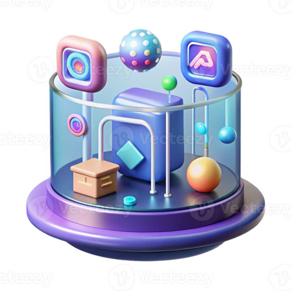 sought-after surreal Holographic display, futuristic interface icons, data streams with Transparent Background crisp Pro PNG