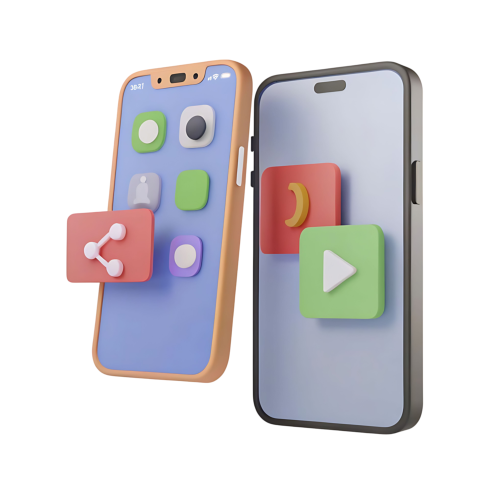 Two Smartphones Displaying Colorful App Icons and User Interface Elements in 3D Render png