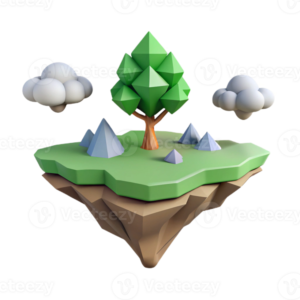 enchanting memorable Isometric floating island with single tree. Scalable, minimal design with Scalable Design. Pro PNG