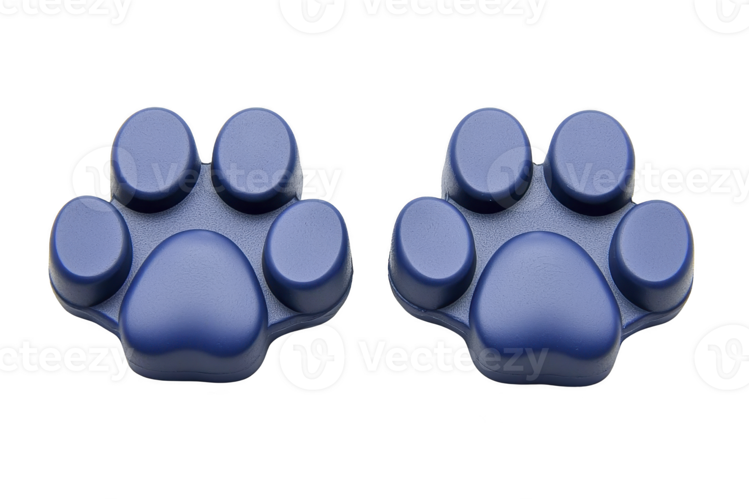A Two blue paw shaped objects are displayed against transparency background, showcasing playful and whimsical design. objects have smooth texture and are identical in shape and size Pro PNG