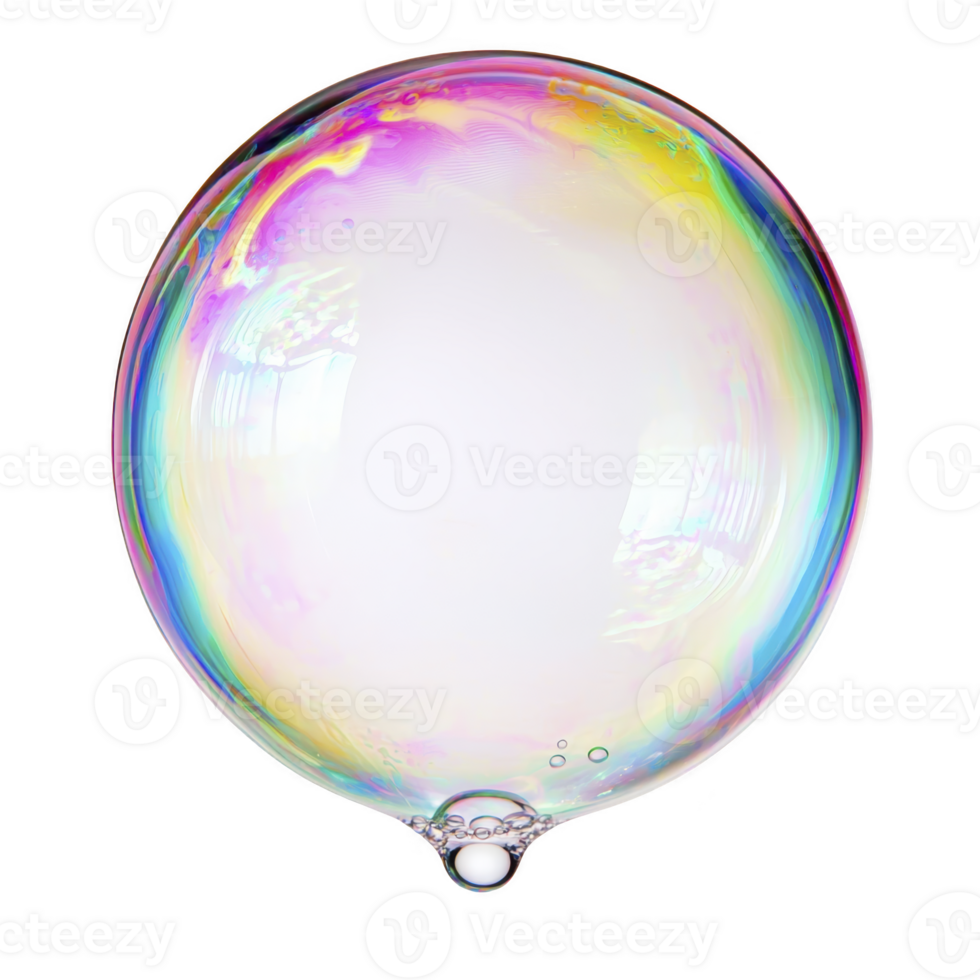 A single, large, iridescent soap bubble floats against transparency background, displaying spectrum of colors its delicate surface. bubble translucent nature and vibrant hues create mesmerizing Pro PNG