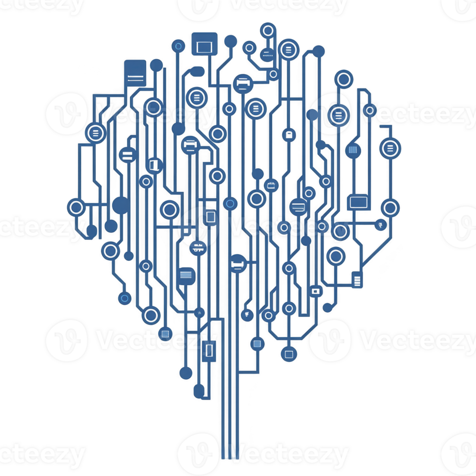 digital tree design with interconnected circuits symbolizes technology and innovation. blue circuitry forms tree shape, representing growth and connectivity in digital world Pro PNG