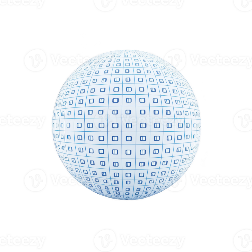 3D sphere with grid pattern of blue squares on white surface, creating futuristic and geometric design. sphere appears isolated on transparency background, emphasizing its intricate pattern Pro PNG