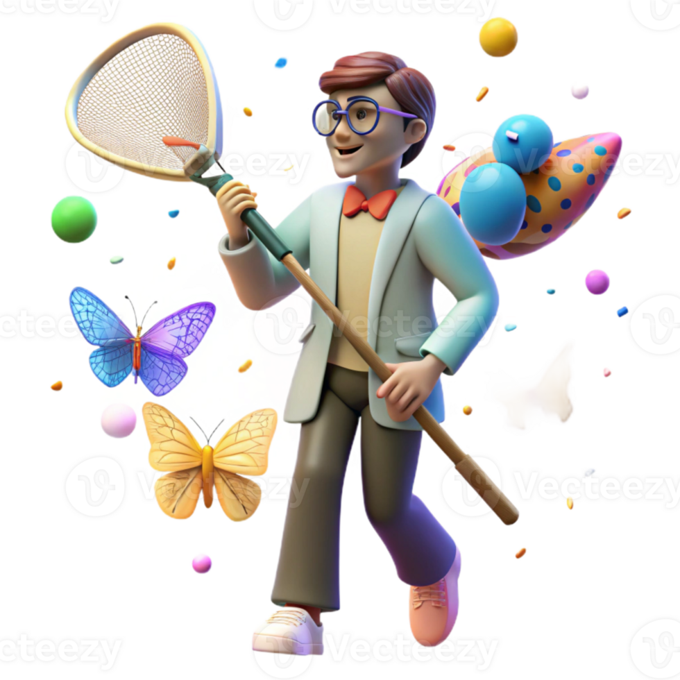 serene abstract Citizen Scientist with Butterfly Net Isolated authentic Pro PNG
