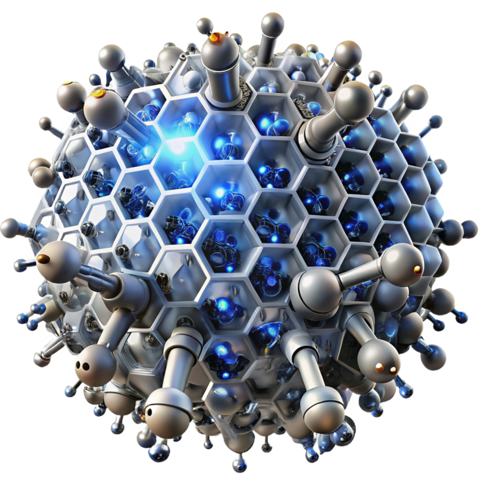alluring exceptional A swarm of nanobots assembling a complex structure, illuminated by a single beam of light, dramatic lighting, microscopic style png