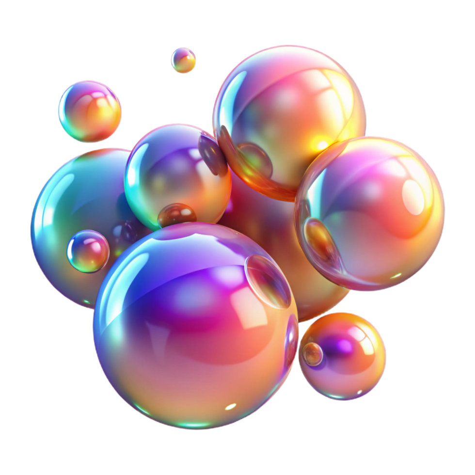 dreamy vibrant A field of shimmering, iridescent bubbles floating in zero gravity, illuminated by a gradient of warm colors, psychedelic style masterfully captured Free PNG