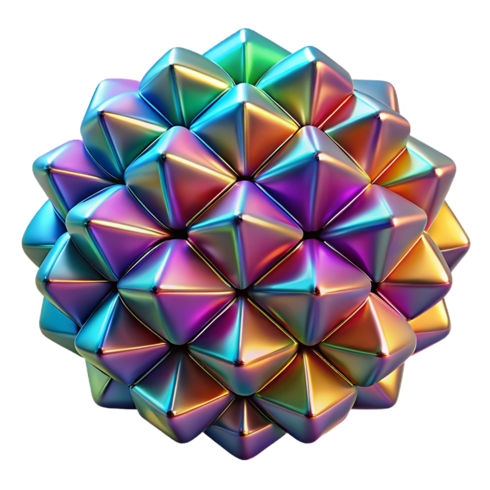 ethereal immaculate A dynamic field of tessellating geometric shapes, with a metallic texture and a vibrant, rainbow color scheme. Global illumination top tier Free PNG