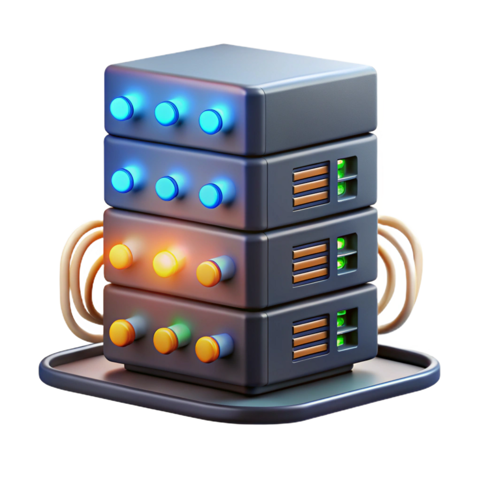 splendid unforgettable A server rack glowing with activity, cables and wires connecting to various devices, data center setting, realistic style Free PNG
