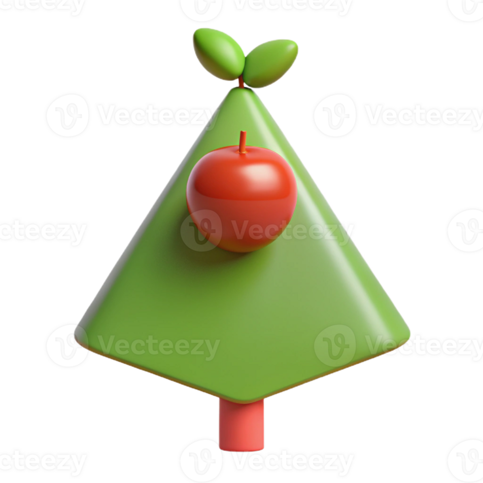melancholic splendid Triangular tree with a single circular apple. Minimal design, crisp edges, flat color with Scalable Design. fine detail Pro PNG