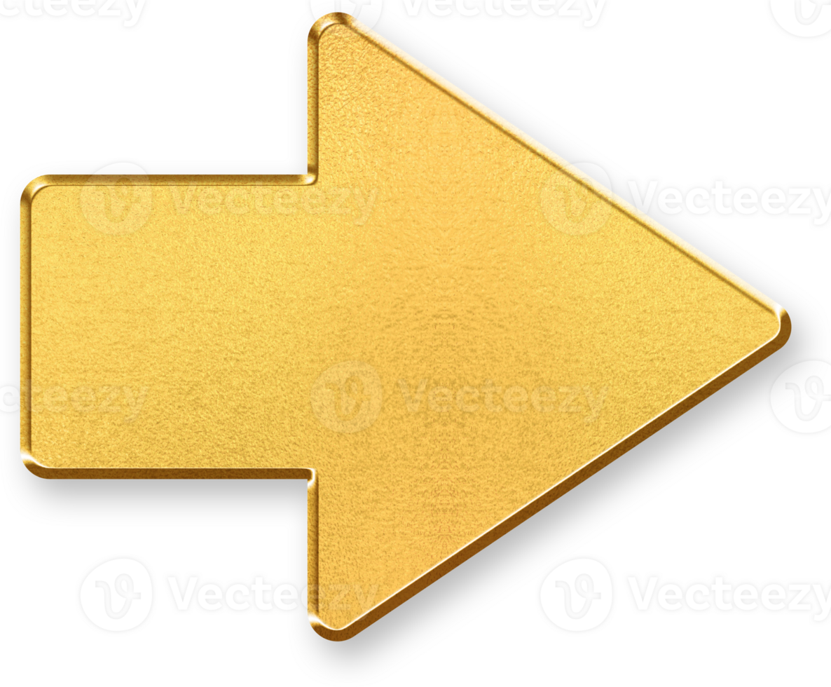 Gold Arrow Right Icon 3D Glossy Golden Right Direction Arrow Symbol with Metallic Shine and Shadowed Style for Navigation, Progression, Next Step, and Forward Movement Interfaces Pro PNG