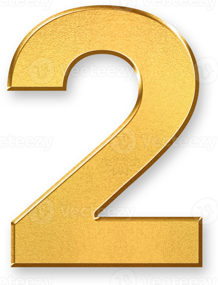 Gold Number Two 2 Icon 3D Glossy Golden Digit 2 Symbol with Metallic Shine and Shadowed Style for Rankings, Step Indicators, List Items, and Order Placement in Digital Designs Pro PNG