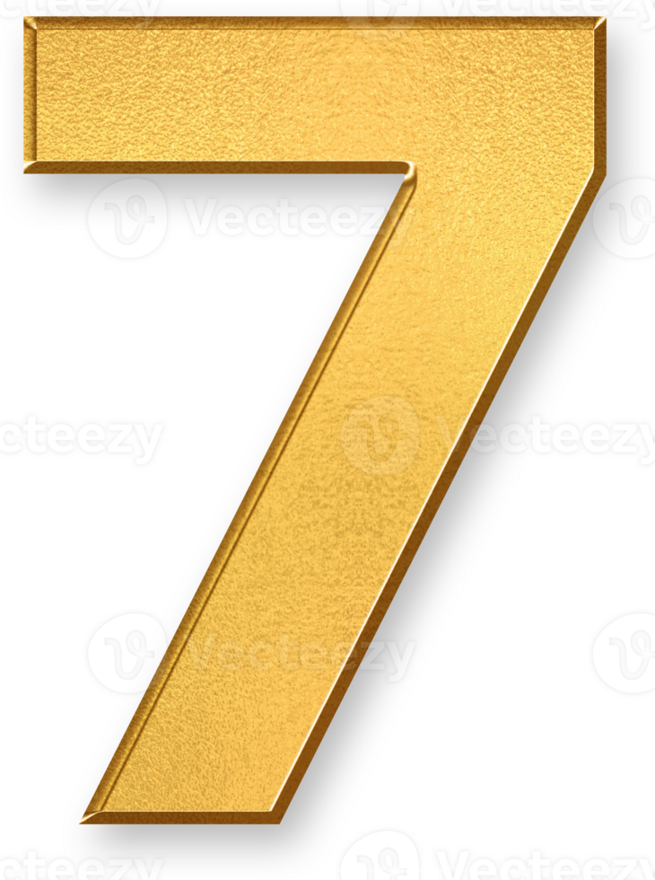 Gold Number Seven 7 Icon 3D Glossy Golden Digit 7 Symbol with Metallic Shine and Shadowed Style for Rankings, List Items, Structured Steps, and Informational Data Sequences Pro PNG
