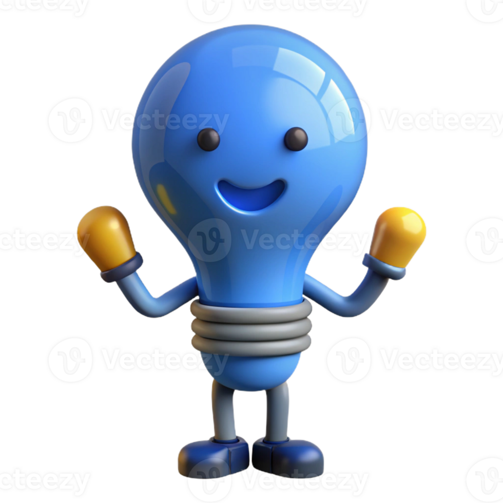 reflective magnificent Lightbulb character with glowing filament. Clean lines, symmetrical, flat color with Scalable Design. detailed Pro PNG
