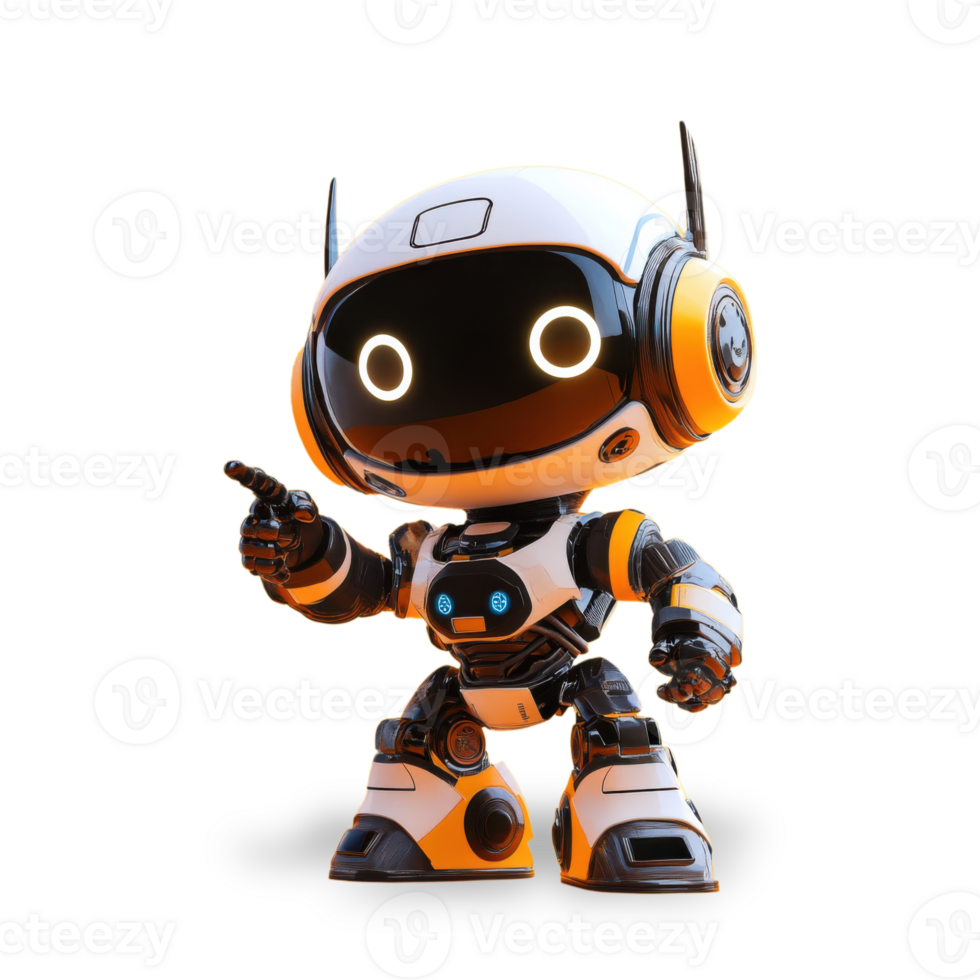 Cute robot character pointing while standing against a simple background with a playful expression showcasing its design Pro PNG