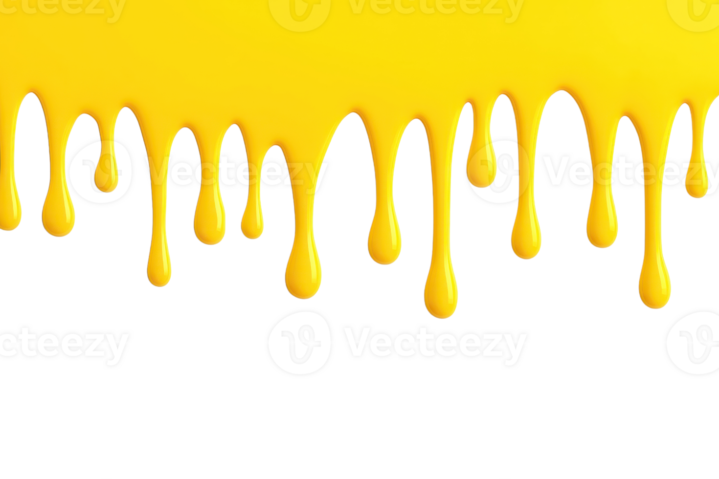 A vibrant yellow paint dripping down against transparency background creates striking contrast and dynamic visual effect. smooth, glossy texture of paint adds sense of fluidity and movement Pro PNG
