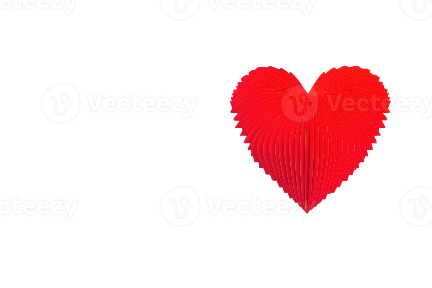 A vibrant red paper heart with pleated design stands out against plain transparency background, symbolizing love and creativity. intricate folds create textured appearance, adding depth and Pro PNG