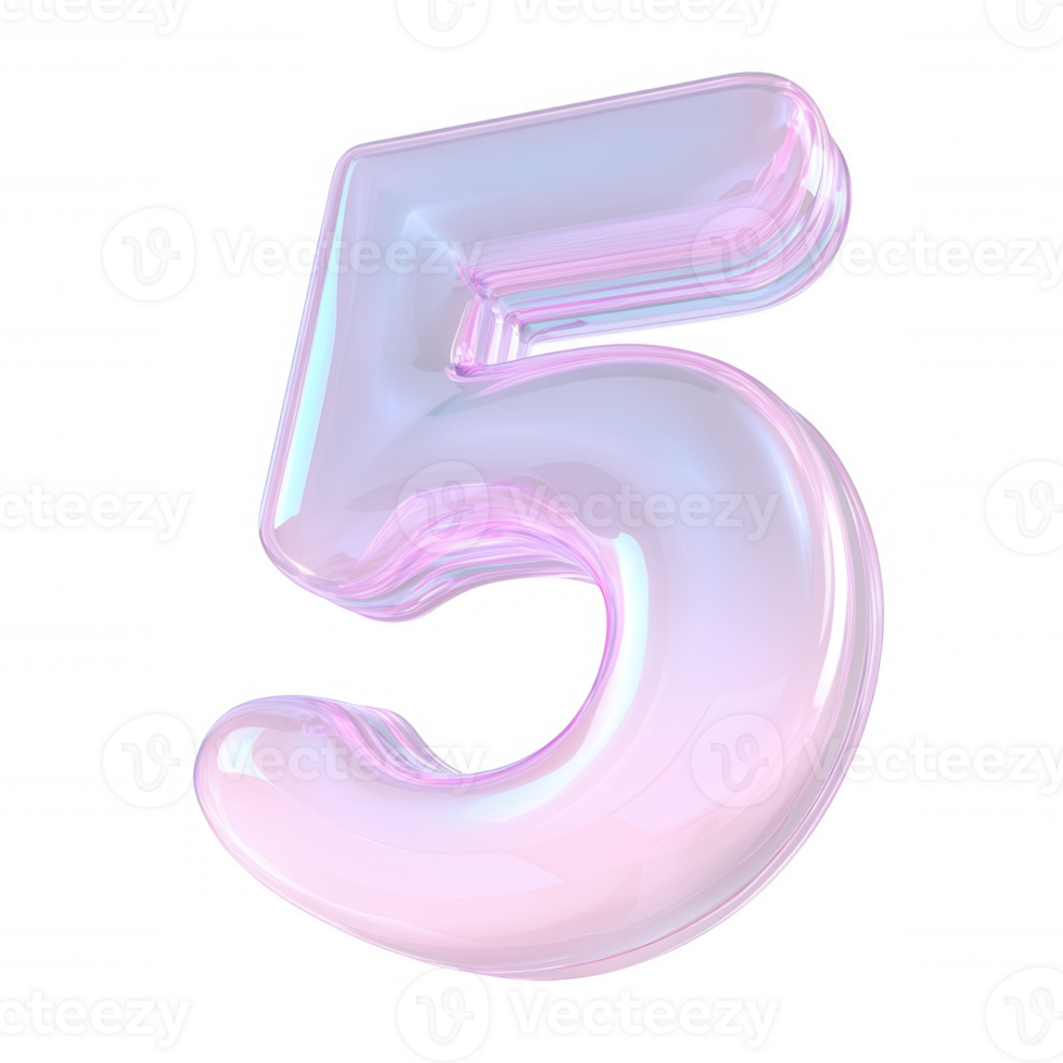 3d icon Glossy pink numeral five on transparent backdrop, highlighting numerical sequence and graphic design versatility Pro PNG