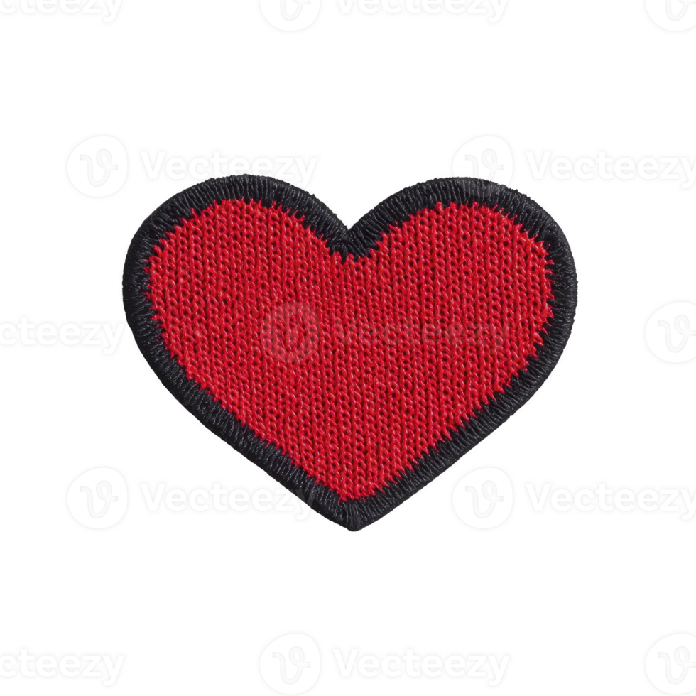 Red heart patch with black border, symbolizing love and affection, is isolated on transparency background. embroidered texture adds tactile element to design Pro PNG