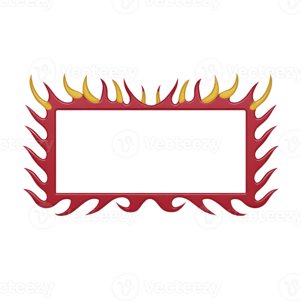 Rectangular frame with fiery design features red and yellow flame like patterns, creating dynamic and bold appearance. frame edges are adorned with sharp, flame shaped extensions Pro PNG