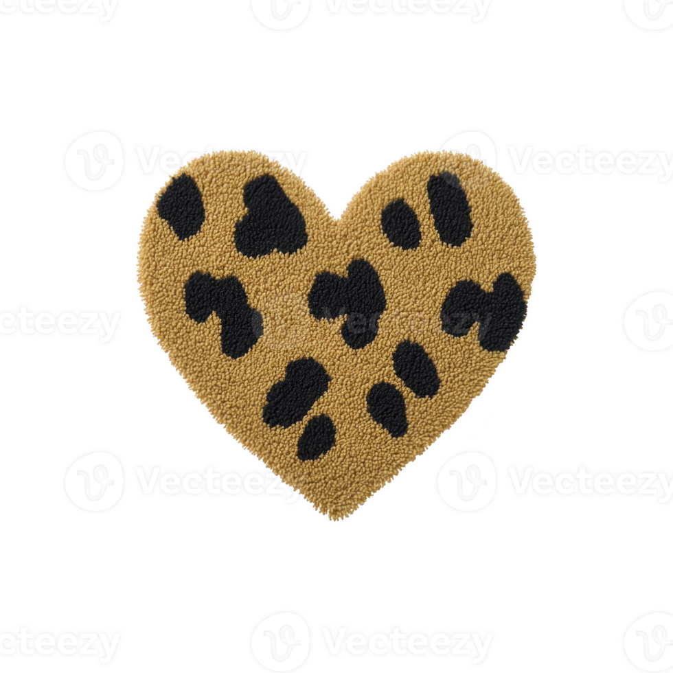 Heart shaped patch with leopard print design, featuring textured surface and black spots on tan background, creating playful and stylish appearance Pro PNG