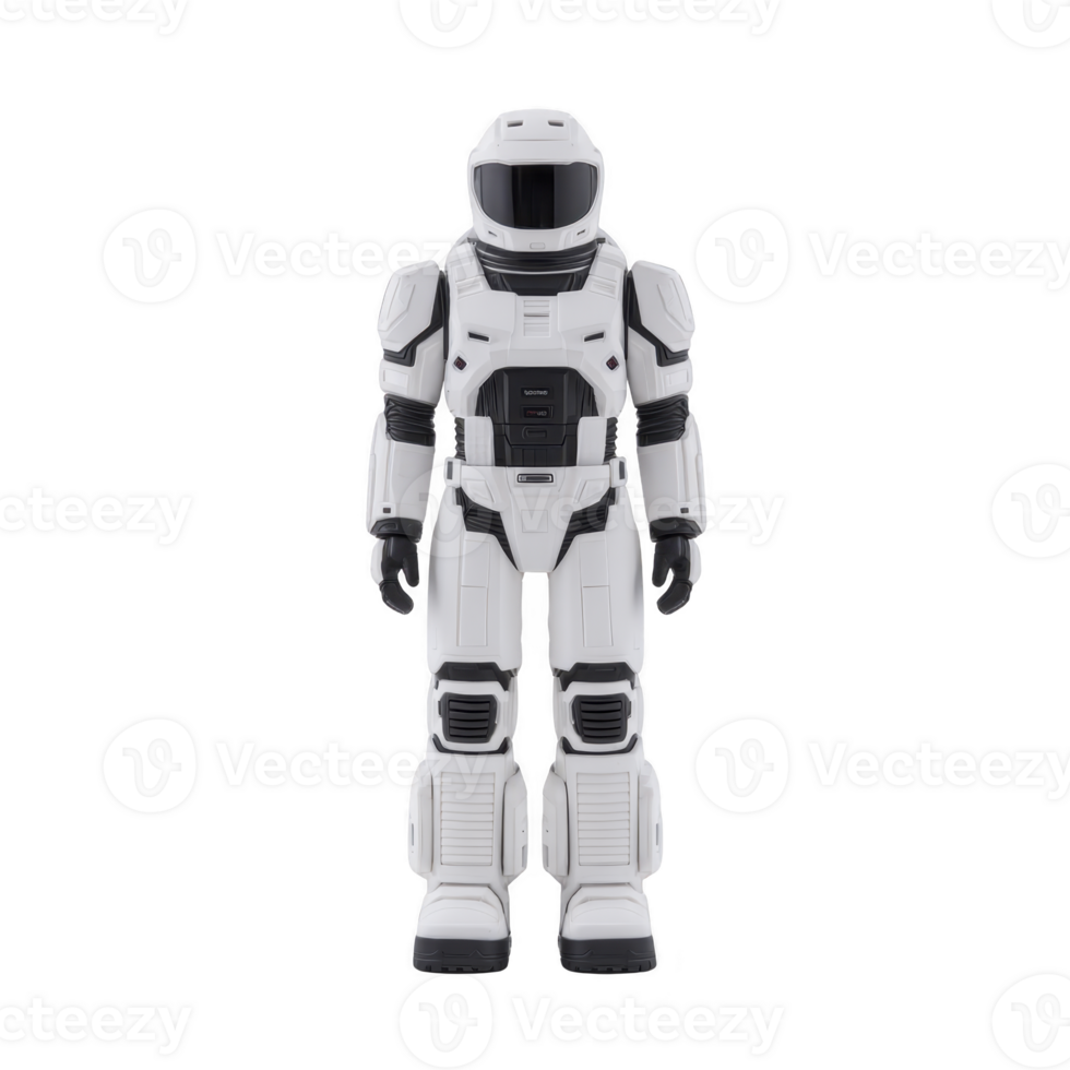 Futuristic white and black robot stands upright, showcasing advanced technology and sleek design. humanoid form suggests potential for various applications in robotics and AI development Pro PNG