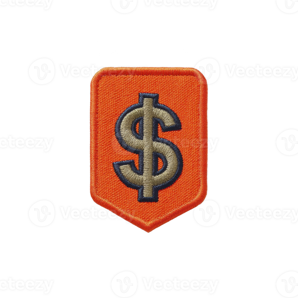 Embroidered patch with dollar sign symbol on orange background, representing financial themes. patch is rectangular with rounded edges and features bold design Pro PNG