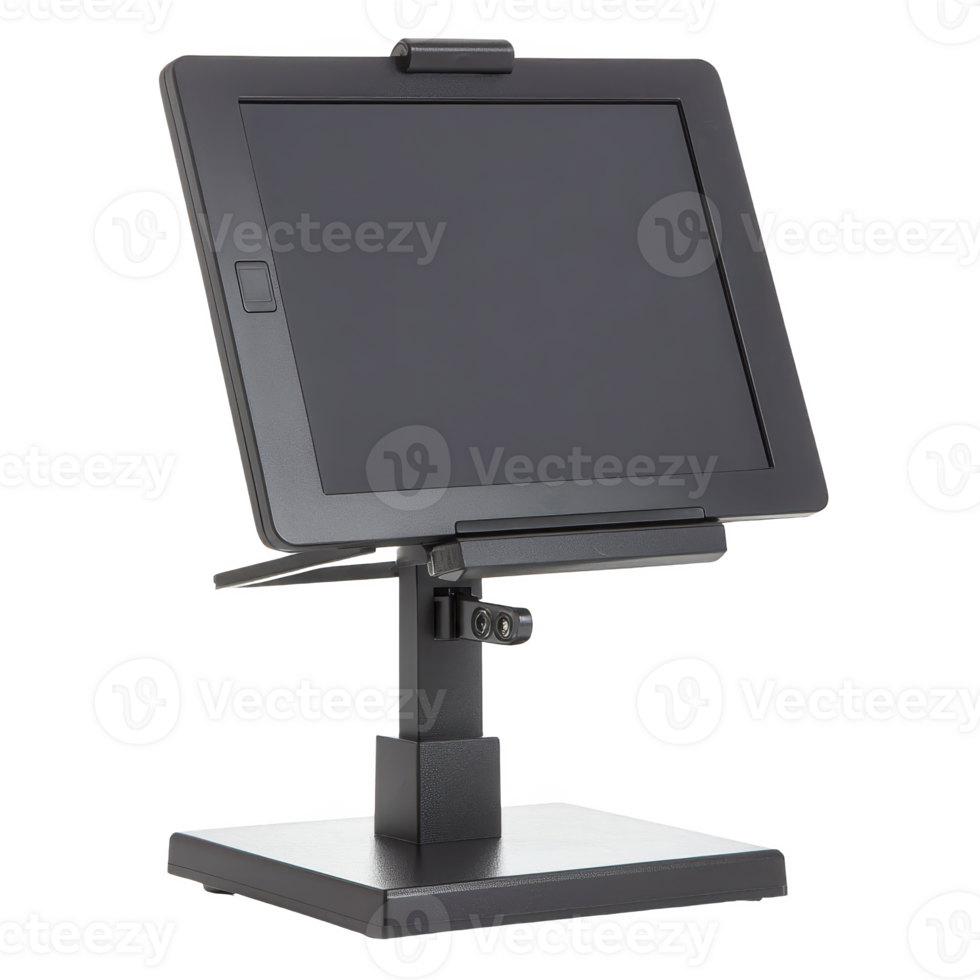 Sleek black touchscreen monitor on adjustable stand, ideal for point of sale systems or interactive displays. modern design enhances functionality and user experience Pro PNG
