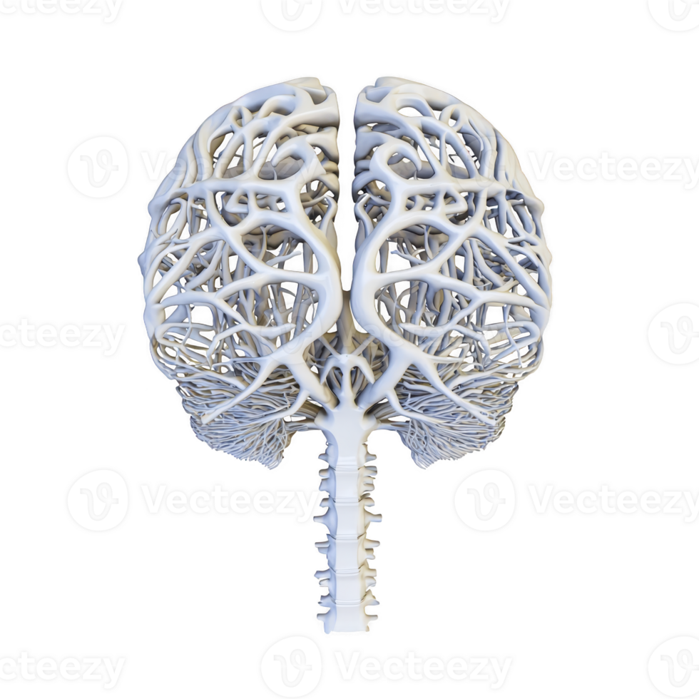 detailed 3D rendering of human brain with intricate white neural pathways and visible spinal cord, showcasing complexity of nervous system Pro PNG