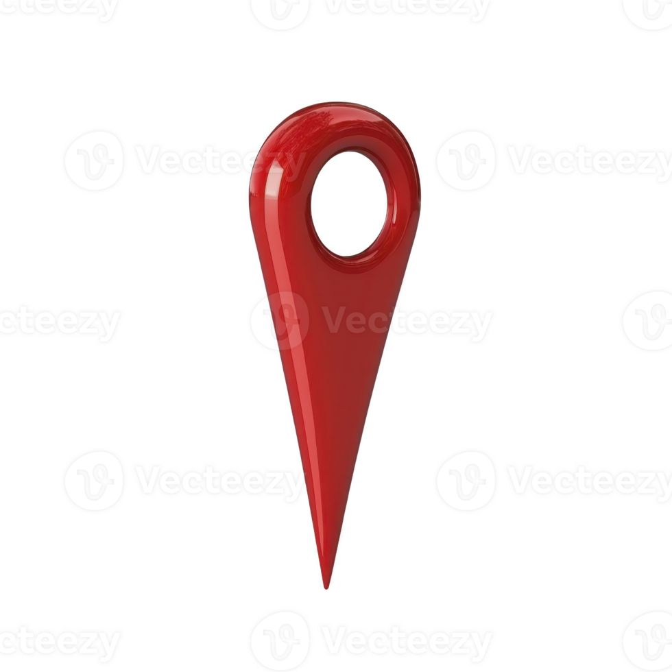 shiny red 3D map pin icon with circular hole at top, symbolizing location or navigation, isolated on transparency background Pro PNG