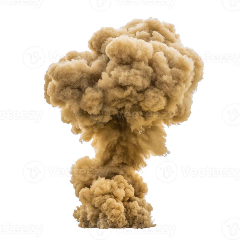 large, dramatic explosion of brown smoke rises against transparency background, creating powerful and dynamic visual effect. smoke billows and swirls, forming intricate patterns Pro PNG
