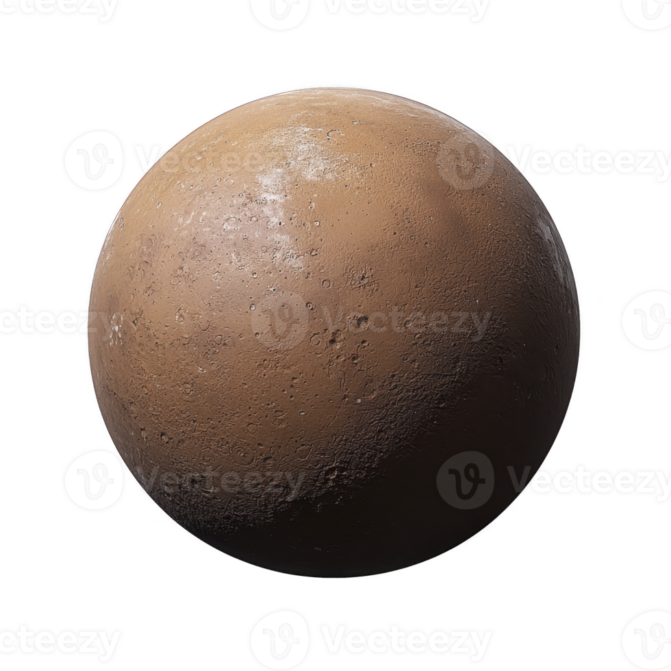 detailed image of brown, cratered planet resembling Mars, showcasing its rugged surface and texture against transparency background. planet surface is marked with numerous craters and ridges Pro PNG