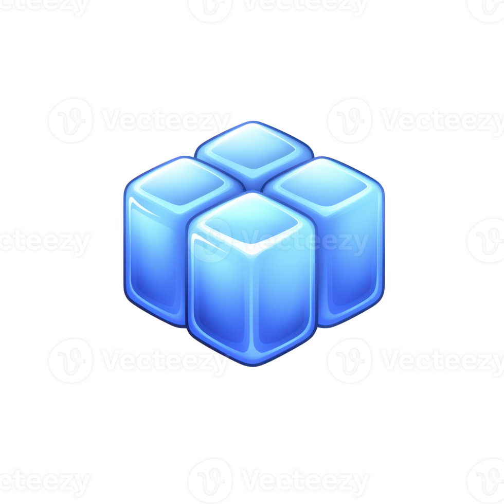 Cluster of four glossy blue cubes arranged in cross pattern, each cube reflecting light to create shiny, futuristic appearance. cubes are set against transparent background Pro PNG