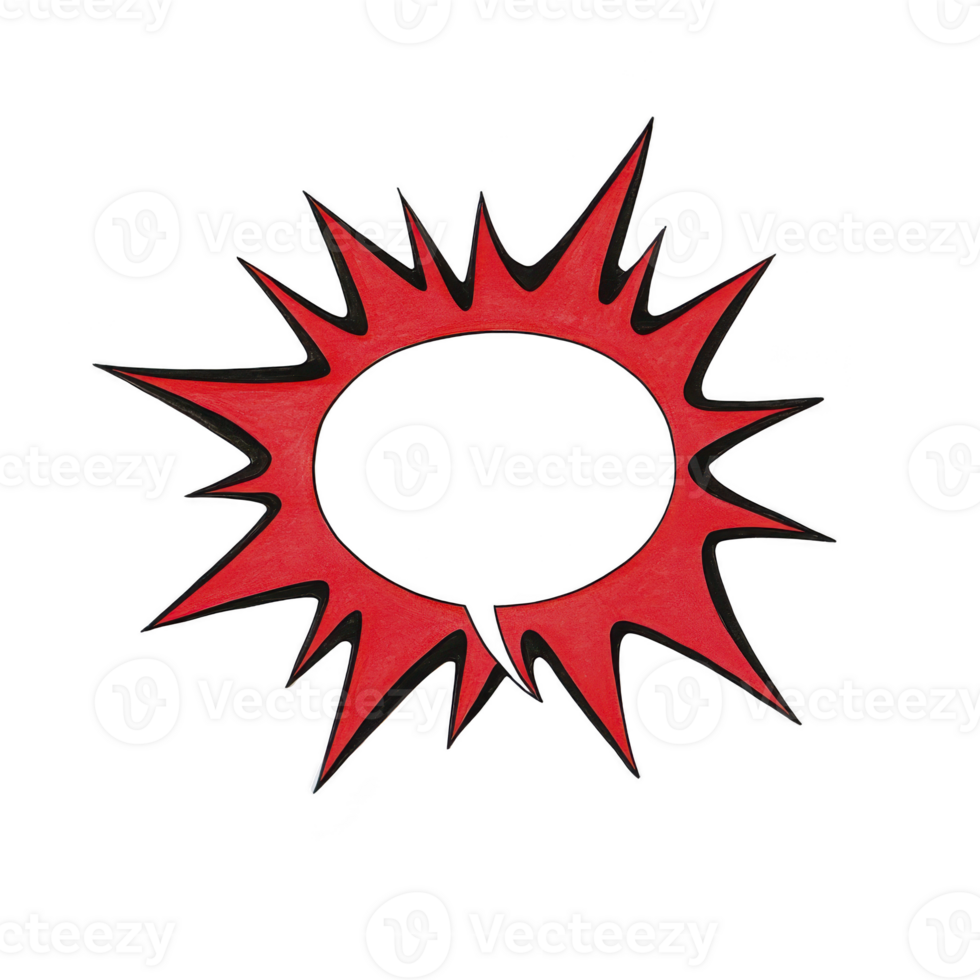 red comic style speech bubble with jagged edges, resembling explosion, is set against transparent background, perfect for adding dynamic text to designs Pro PNG