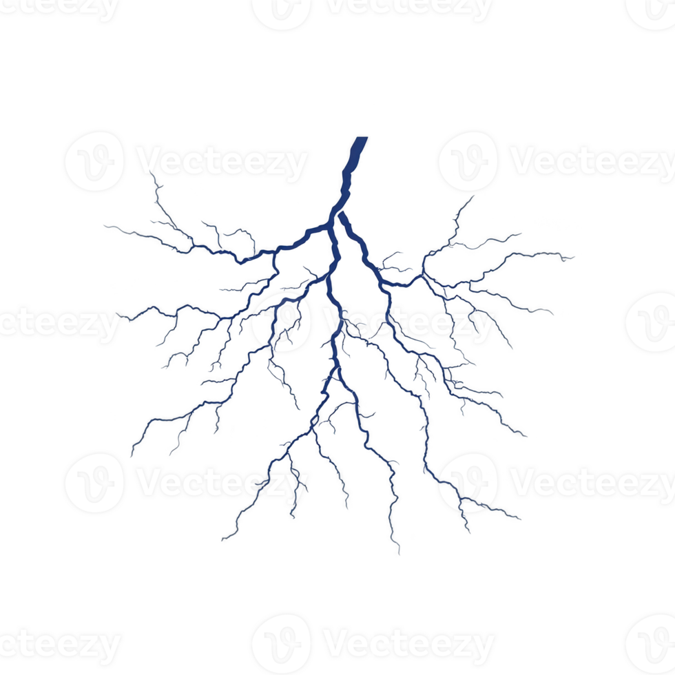 striking image of blue lightning bolt branching out against transparency background, resembling tree like structure. intricate pattern creates sense of energy and power Pro PNG