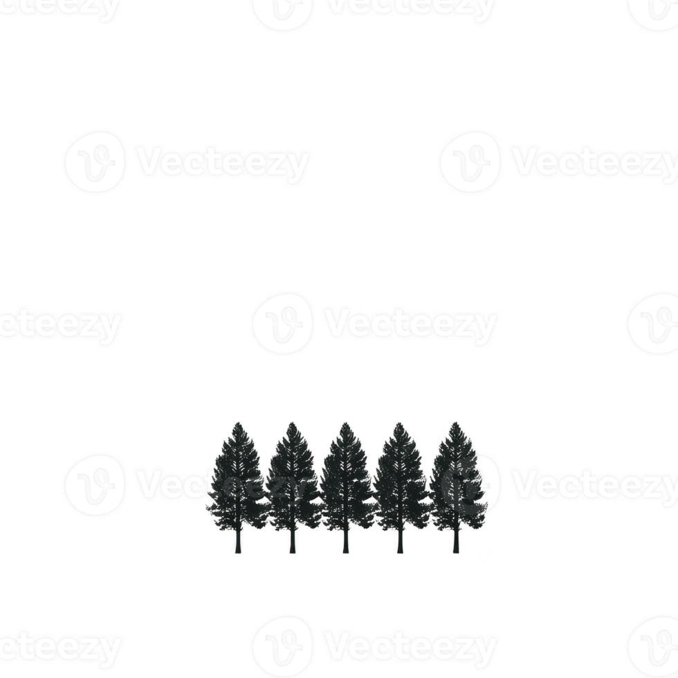 row of five silhouetted trees stands against transparency background, creating minimalist and serene landscape. simplicity of design evokes sense of calm and tranquility Pro PNG