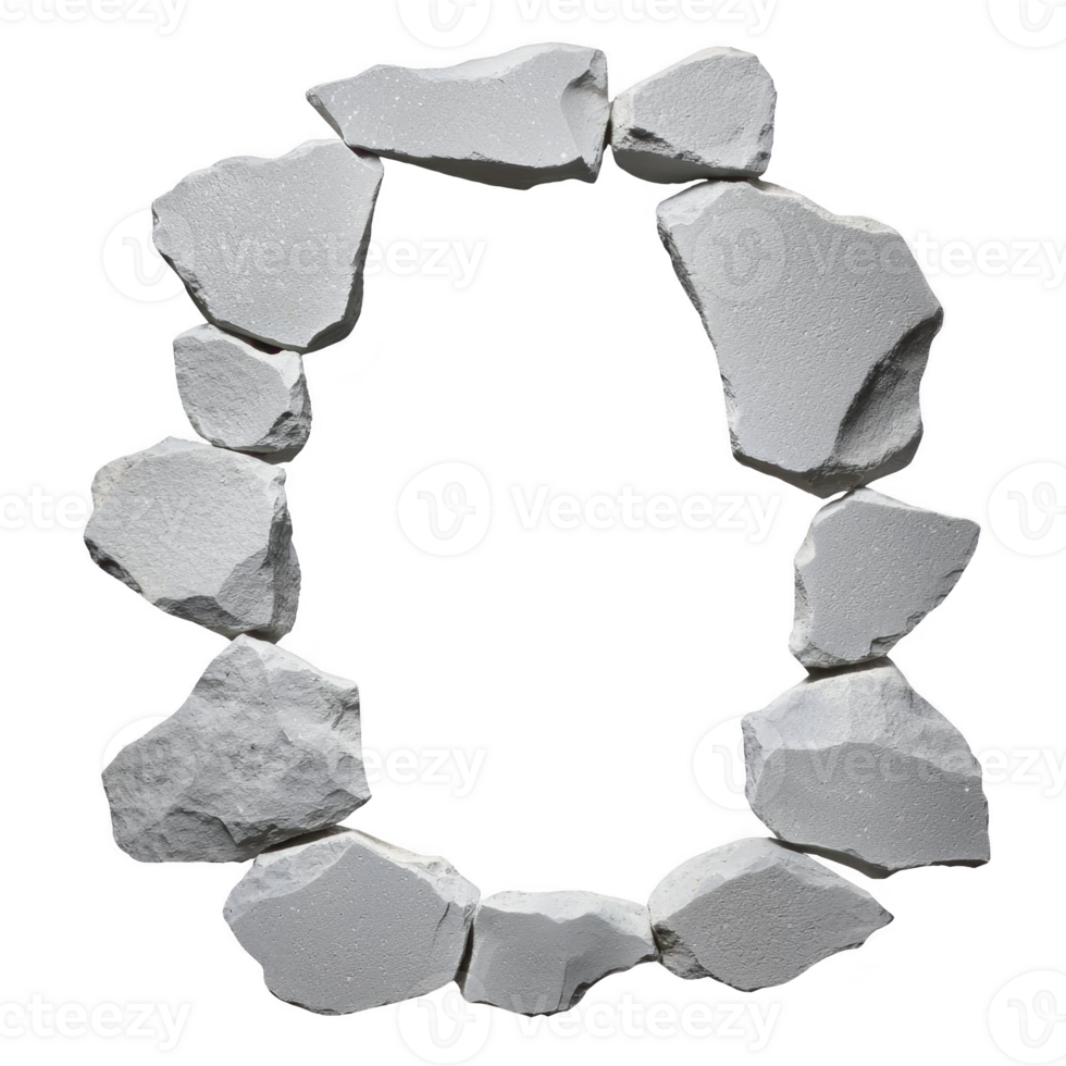 circle of rough, white stones arranged on plain background creates natural and rustic frame. stones vary in size and shape, adding texture and interest to composition Pro PNG
