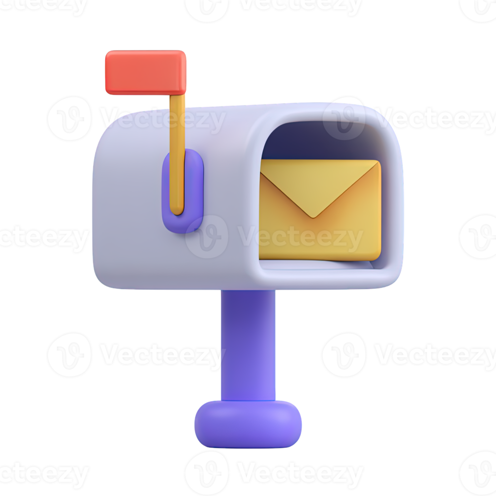 3D mailbox with an envelope inside symbolizing received mail. Ideal for email clients communication platforms and UI alerts for new messages. Pro PNG