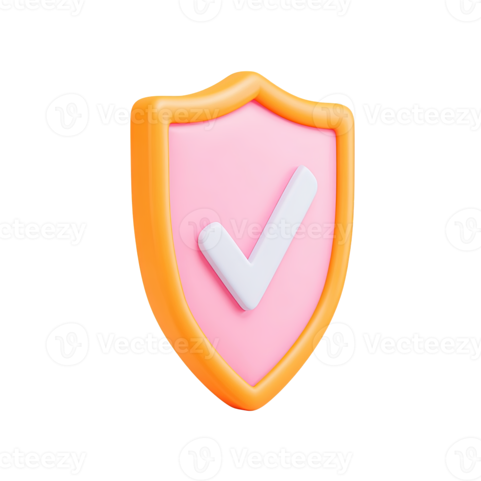 Pink 3D shield with a prominent white checkmark, representing approval, verification, or confirmed safety. Isolated rendered graphic for security validation and positive check concepts. Pro PNG