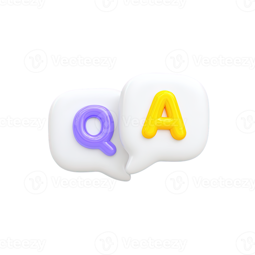 Speech bubble with Q and A letters 3D rendered icon for Frequently Asked Questions support section help information or customer service query Pro PNG