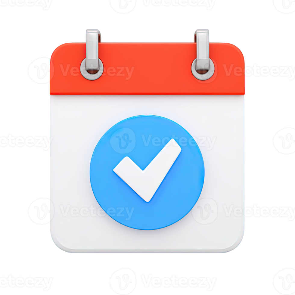 Calendar with blue checkmark a 3D rendered icon for confirmed schedules completed tasks event validation or successful appointment booking system Pro PNG
