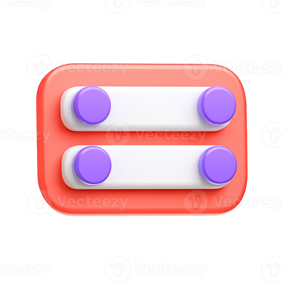 Two toggle switches or sliders a 3D rendered icon for settings control panel UI options preferences or on off adjustment functionality Pro PNG