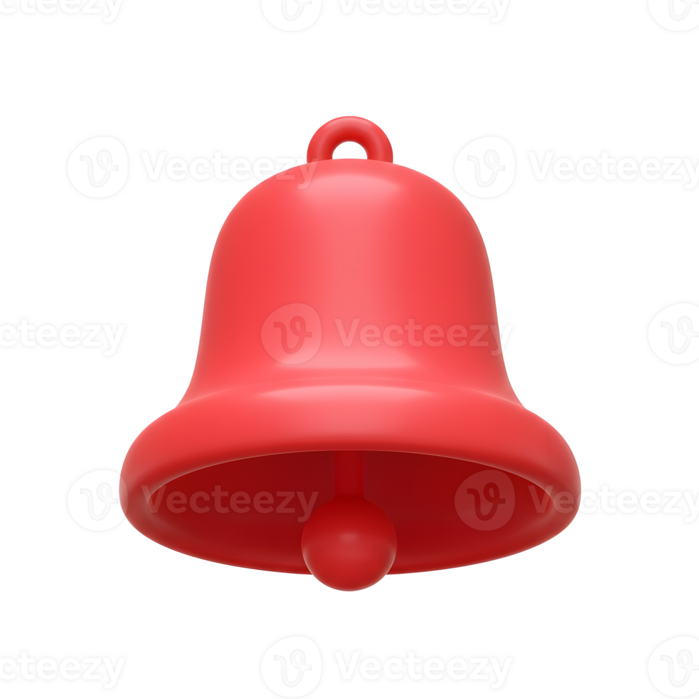 A red bell with a shiny finish is presented against a stark white background, suitable for adding notifications or alerts. Pro PNG