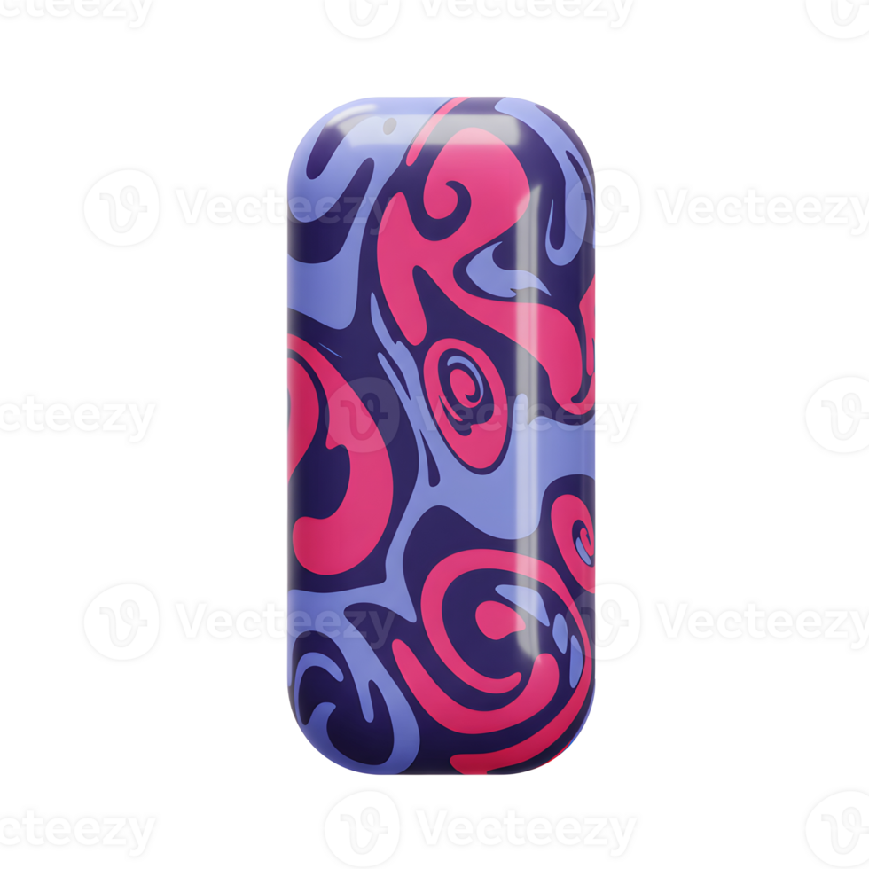 A glossy container features an abstract swirl pattern in purple and pink, creating a vibrant and eye-catching design for holding various items. Pro PNG