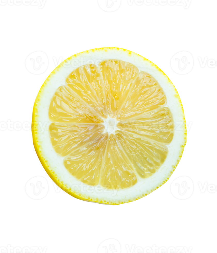 Front view or top view of ripe lemon fruit in one half with seed isolated with clipping path in file format Pro PNG