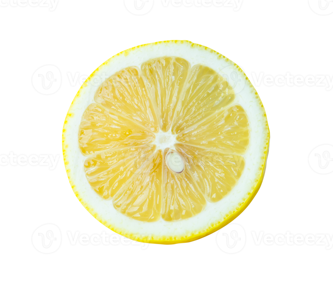 Front view or top view of ripe yellow lemon fruit in one half with seed isolated with clipping path in file format Pro PNG