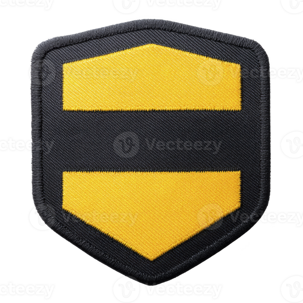 This shows black and yellow embroidered patch with shield shape. patch features simple design with two horizontal yellow bars transparency background, creating bold and striking appearance Pro PNG