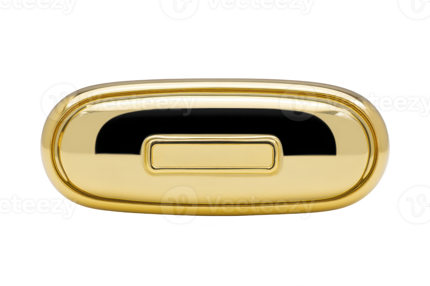 Sleek, shiny gold oval object with rectangular button in center, reflecting light. design is modern and elegant, suggesting luxurious and sophisticated item Pro PNG