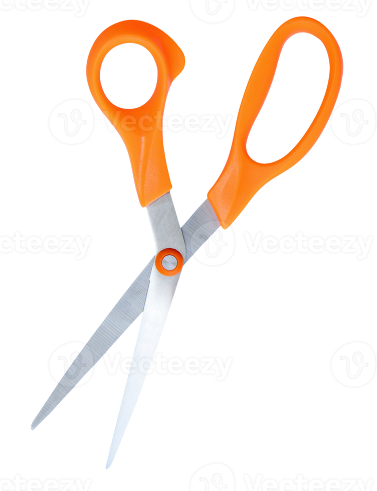 Open multipurpose scissors with orange handle isolated with clipping path in file format Pro PNG
