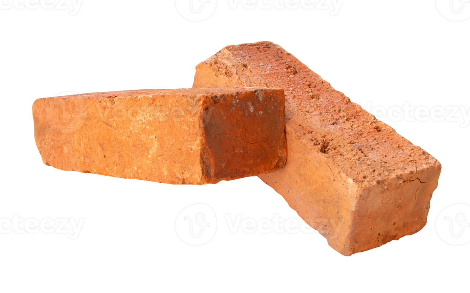 Two cracked old red bricks in stack isolated with clipping path in file format Pro PNG