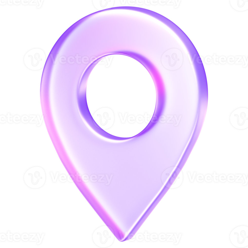 Minimal glassmorphism location pin icon representing map, place, or navigation marker in digital applications, map pointer, 3d rendering Pro PNG